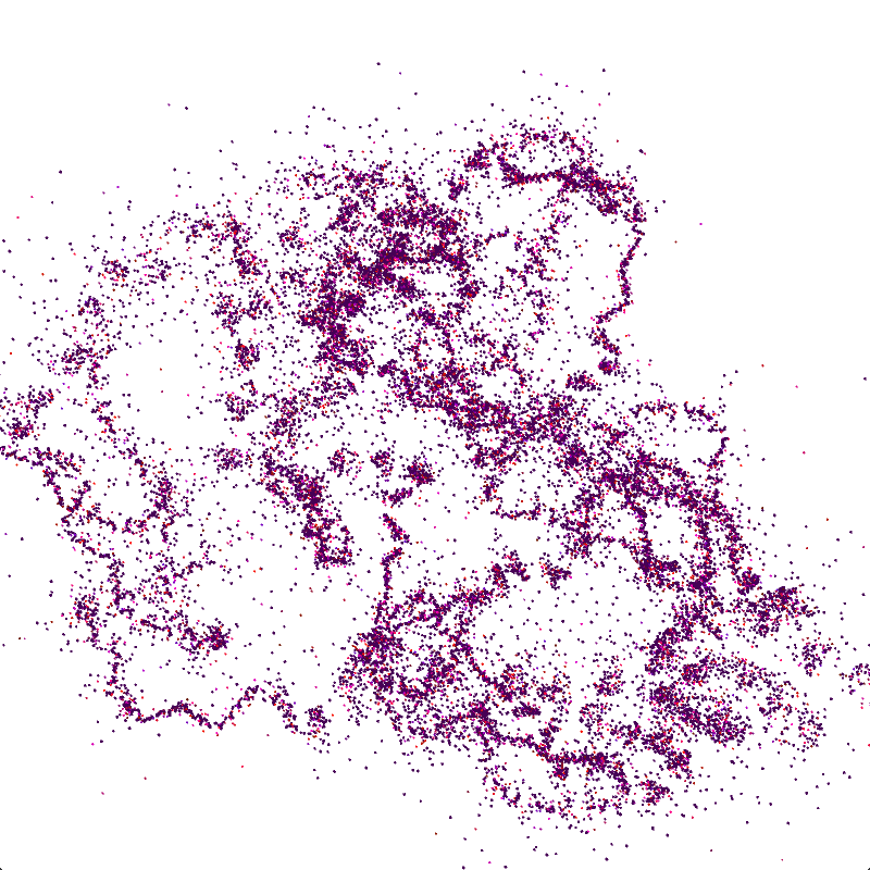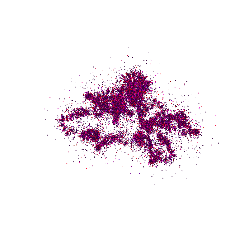 Generative flurries of recursive particle clusters, created with Processing. Summer 2017